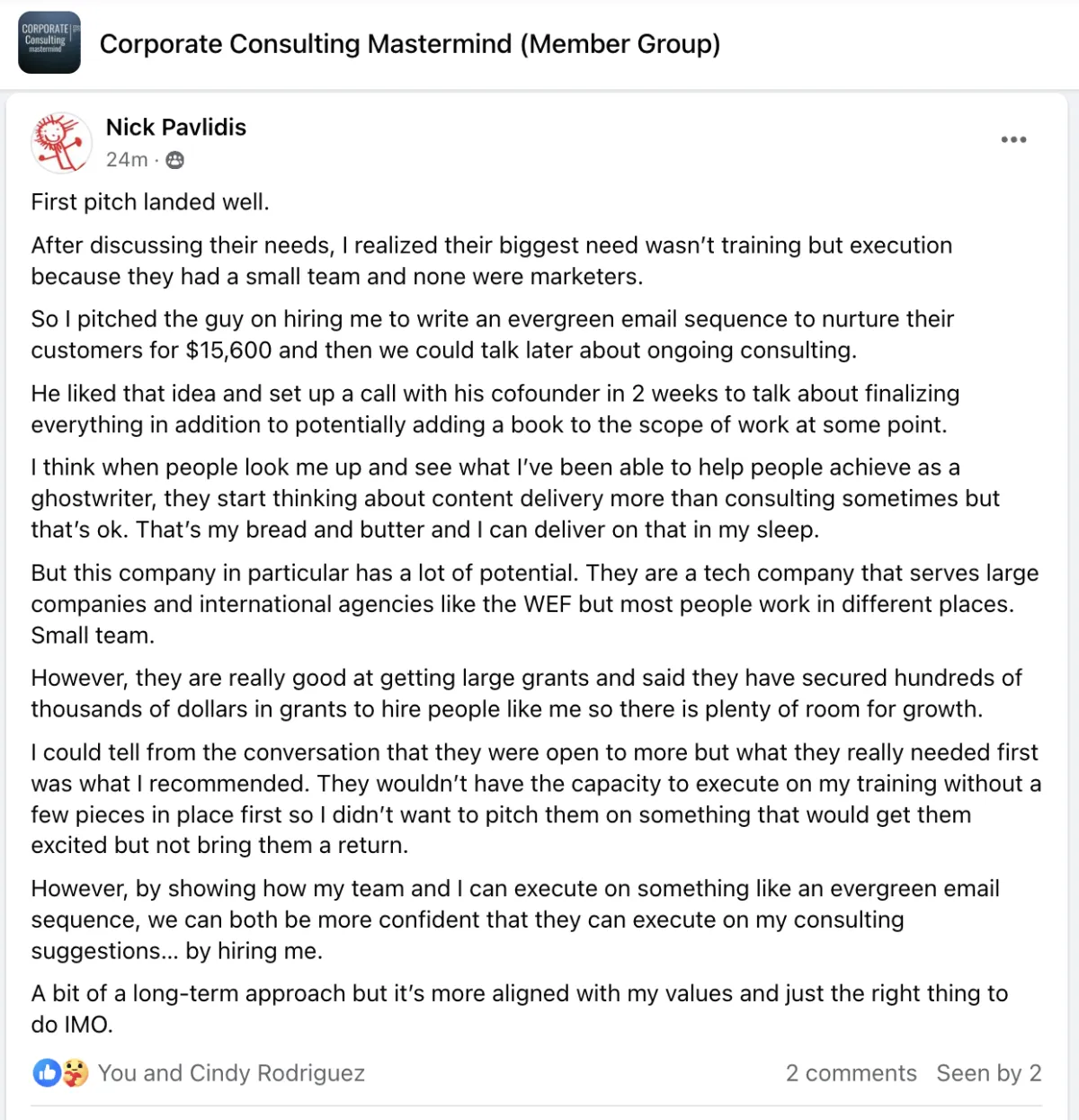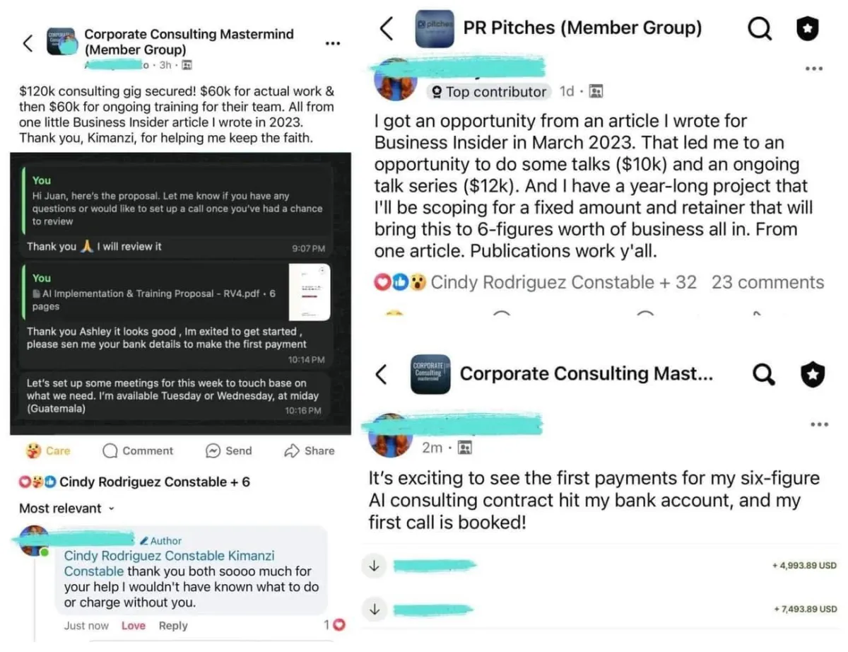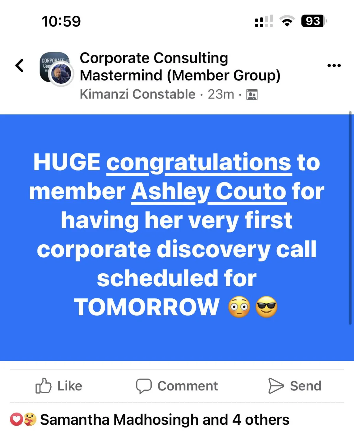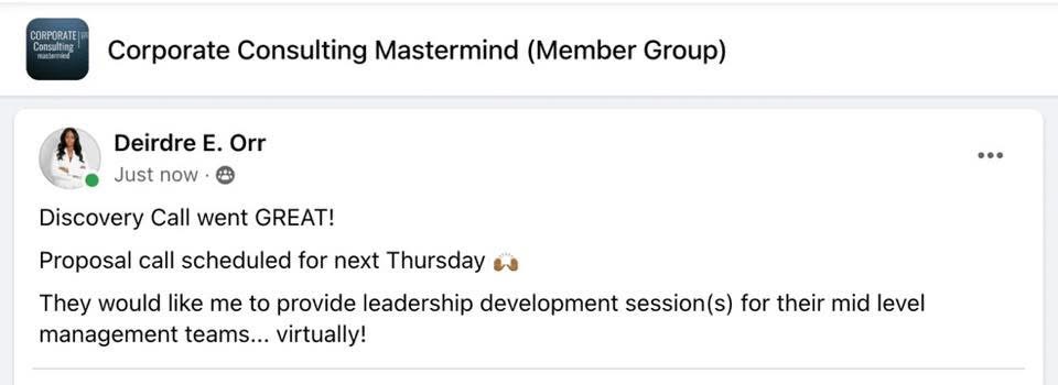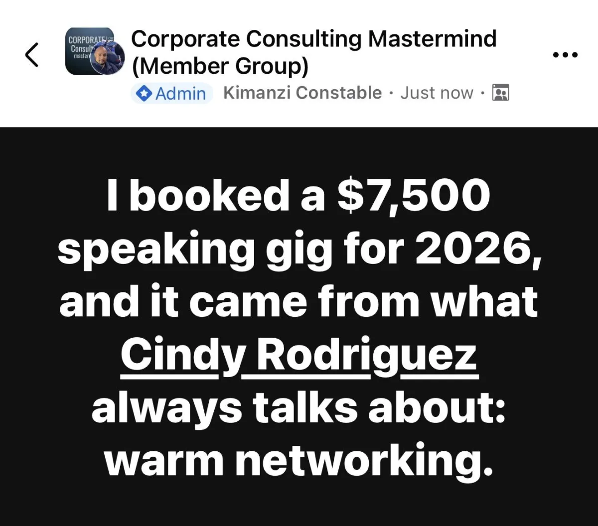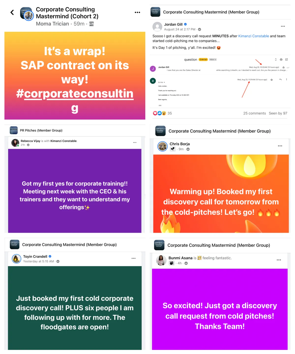 You get real deal stuff that works to help you book corporate consulting. And the results the members have gotten have been incredible.